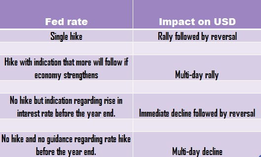 Theoretically, the impact of the FOMC decision on the US dollar will be as presented in the tabular column below:
